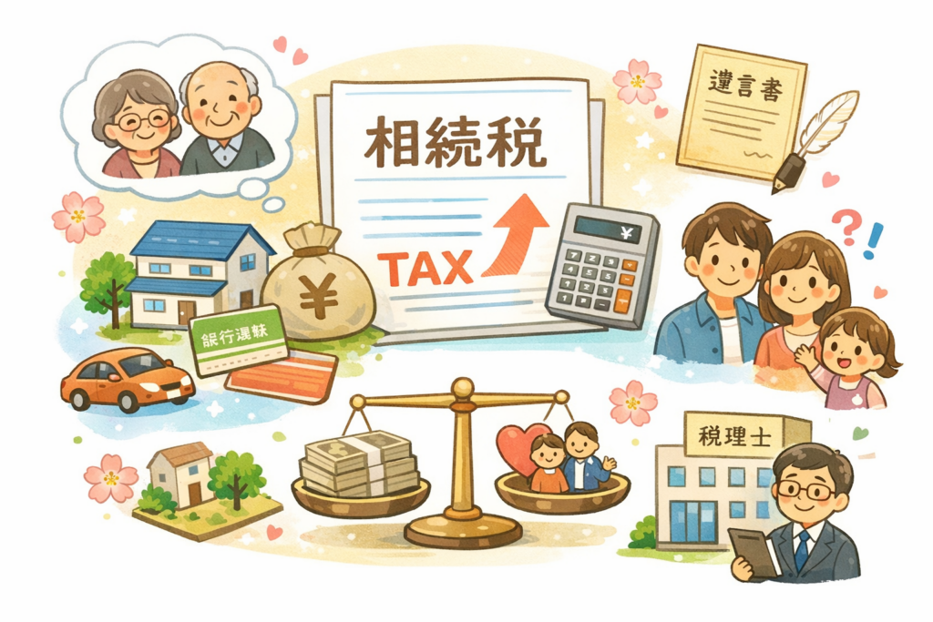 相続が発生すると、多くの方がまず気になるのが「相続税はいくらかかるのか」という点です。しかし、相続税の仕組みや計算方法、相続税対策の考え方は複雑で、初めての方には分かりにくい部分も少なくありません。このページでは、相続税の基礎知識から、相続税の計算方法、控除の種類、そして将来の不安を軽くするための相続税対策のポイントまでを、専門用語をかみ砕きながらわかりやすく解説します。